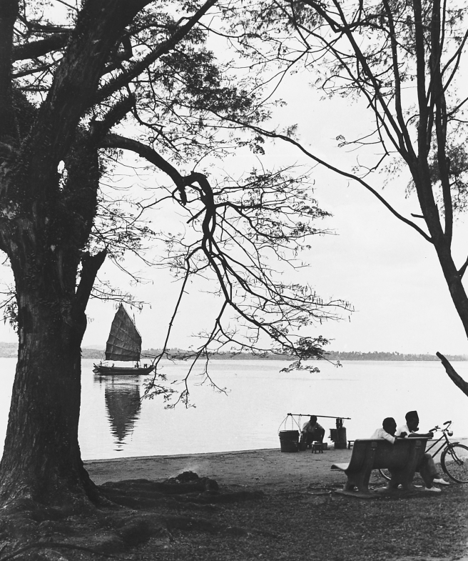 當時新柔兩地以渡輪往來,海峽、紗玉河還可見到載人運貨的帆船。新山市區華人約 3 千有餘,還算是僑民社群,方言籍貫的門戶成見頗深。
