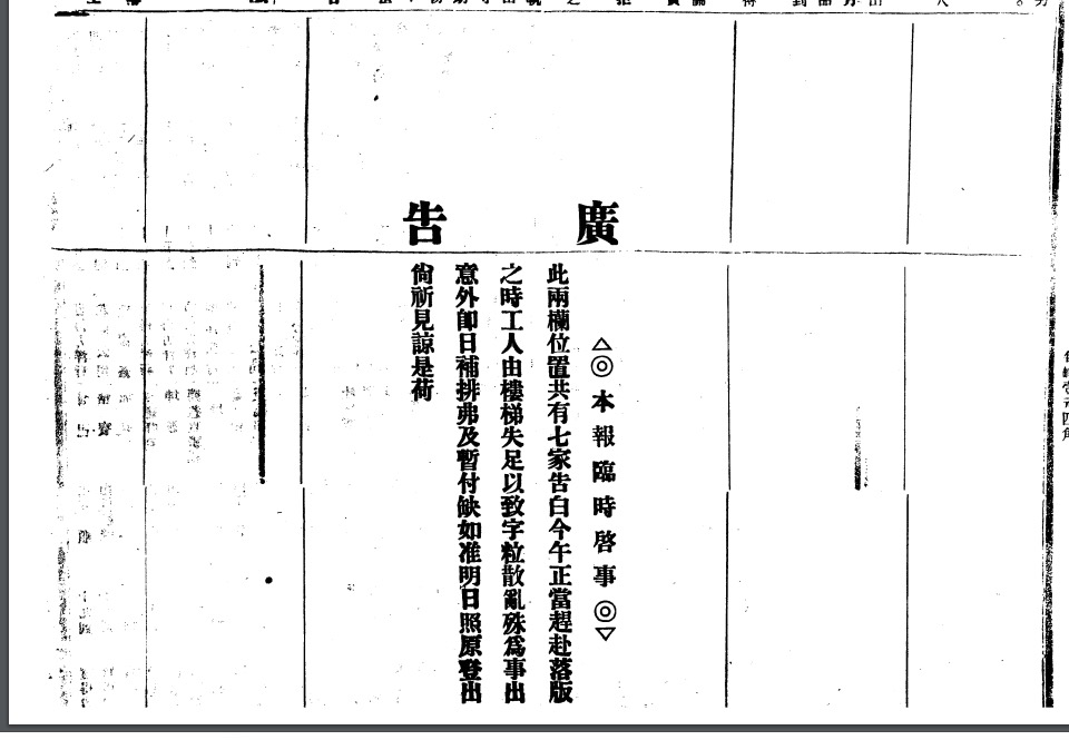 - 這是“開天窗”。中國審查嚴格的清末、民國時期,也常因稿件臨時被抽起,重寫不及,而出現開天窗的情況。