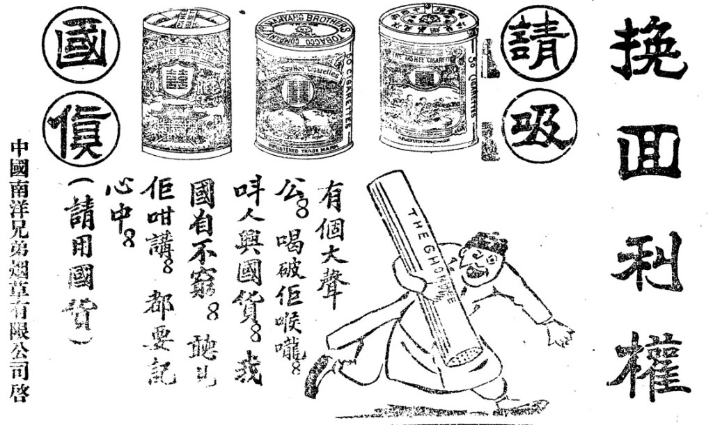 Facebook Page《搜舊報紙》搬家 29/02/2429/02/24 ~ ycteo 頭版香煙廣告。 以支持國貨為訴求。 香煙公司至今猶存。 三個香煙罐左起:雙喜、四喜、大喜。 廣東人的公司所以文案要用廣東話唸出。 新國民日報 1919年10月01日 中國南洋兄弟烟草有限公司 pskl0002 分享此文: 分享到 Facebook(在新視窗中開啟) Facebook 分享到 X(在新視窗中開啟) X 喜歡 正在載入... 相關 頁面: 1 2 3 4 5 6 7 8 9 10 11 12 13 14 15 16 17 18 19 20 21 22 發表者:ycteo 檢視 ycteo 的所有文章
