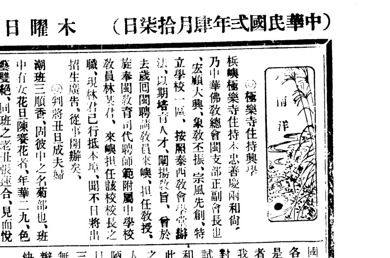 Facebook Page《搜舊報紙》搬家 29/02/2429/02/24 ~ ycteo 查本忠為住持,善慶名列創寺諸公。參考妙蓮法師事跡。 泰西教會指西方教會,與泰國無關。 照文中所述,該校籌備妥當,原任福建師範附屬中學教員的校長林某也已到檳城了。 該校名號?招生如何?今存否?查無資料,不知可有檳榔嶼人士知情? 振南日報 1913年04月17日 檳城極樂寺 pskl0009 分享此文: 按一下以分享至 Facebook(在新視窗中開啟) Facebook 按一下即可分享至 X(在新視窗中開啟) X 喜歡 正在載入... 相關 頁面: 1 2 3 4 5 6 7 8 9 10 11 12 13 14 15 16 17 18 19 20 21 22 發表者:ycteo 檢視 ycteo 的所有文章